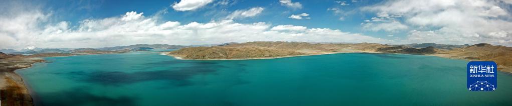 這是在特布拉村拍攝到的羊卓雍錯(cuò)。新華社記者 姜帆 攝(無(wú)人機(jī)合成照片,4月16日攝)