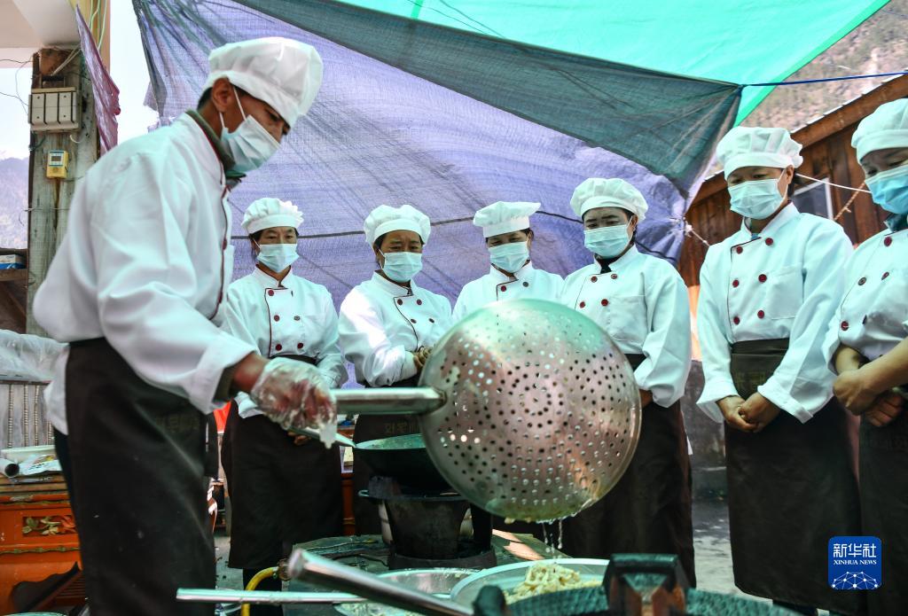 近日,在西藏林芝市察隅縣上察隅鎮(zhèn)西巴村,察隅縣人社局為當(dāng)?shù)冂蟀妥迦罕娕e行“珞巴宴”培訓(xùn)班,讓村民在家門口就能學(xué)習(xí)珞巴特色菜、藏餐、川菜、面點(diǎn)等烹飪技能。