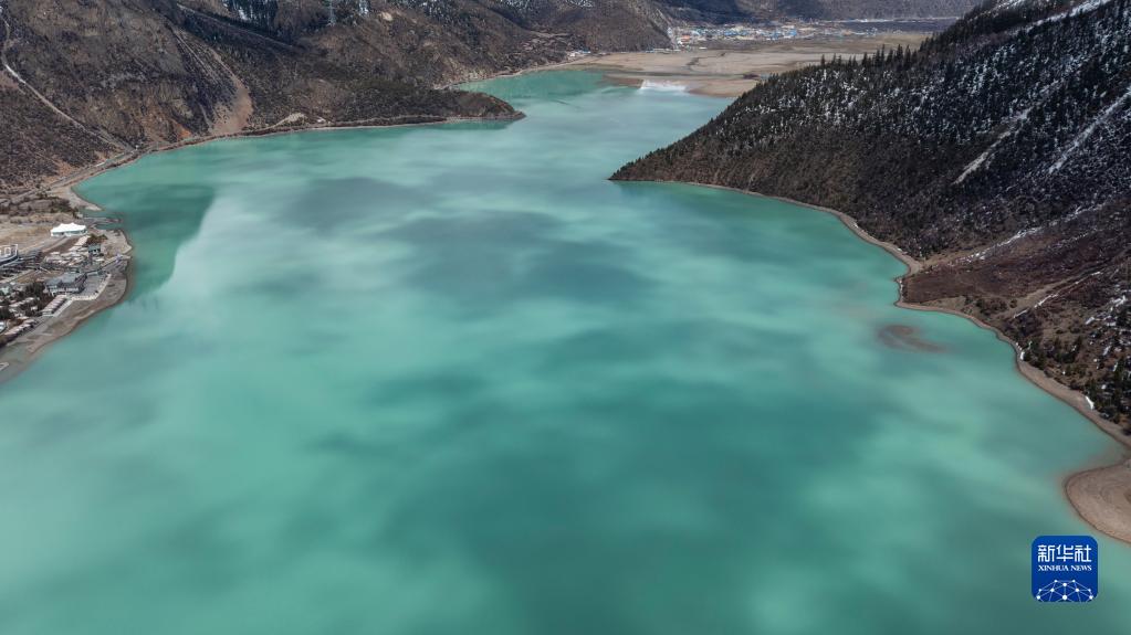 這是無人機(jī)拍攝的然烏湖(4月18日攝)。新華社記者 孫非 攝