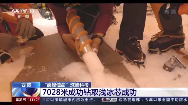 4月28日夜里,三根來(lái)自珠峰海拔7028米處的淺冰芯已被送到了珠峰大本營(yíng)。