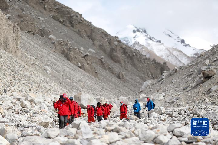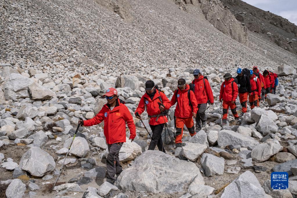 科考隊(duì)員正在返回大本營(yíng)(5月5日攝)。新華社記者 孫非 攝