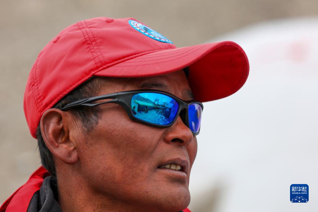 安全返回大本營(yíng)的珠峰科考登頂工作小組副組長(zhǎng)扎西平措,這是他第16次成功登頂珠峰(5月5日攝)。新華社記者 姜帆 攝