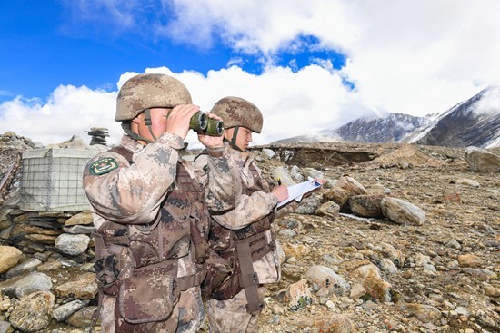 崗巴營5592觀察哨戰(zhàn)士正在執(zhí)勤。 王乾 攝