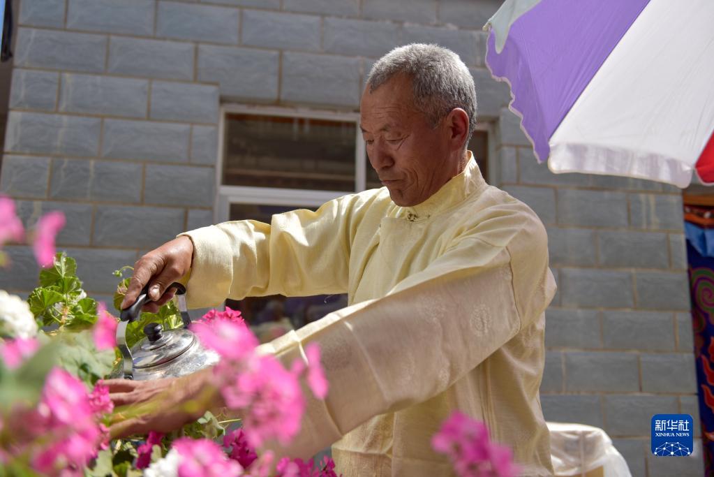 這是在拉薩市達孜區(qū)幫堆鄉(xiāng)林阿村拍攝的金珠(右)(5月18日攝)。新華社記者 格桑朗杰 攝