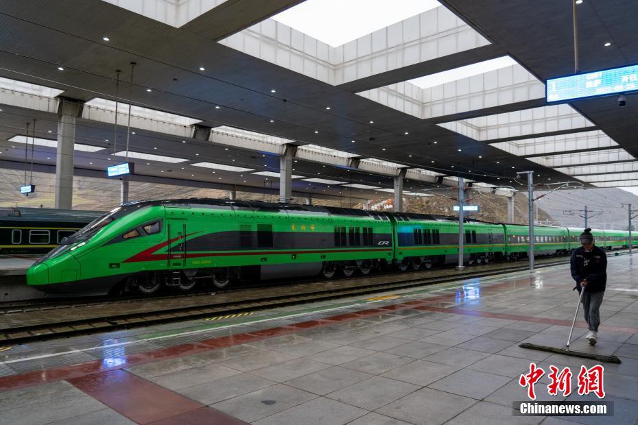 6月25日,西藏第一條電氣化鐵路——拉林鐵路開(kāi)通運(yùn)營(yíng)滿一周年。一年來(lái),累計(jì)運(yùn)送旅客113.7萬(wàn)人次、貨物4.78萬(wàn)噸。圖為當(dāng)日,拉薩火車(chē)站內(nèi),復(fù)興號(hào)整裝待發(fā)。 中新社記者 江飛波 攝