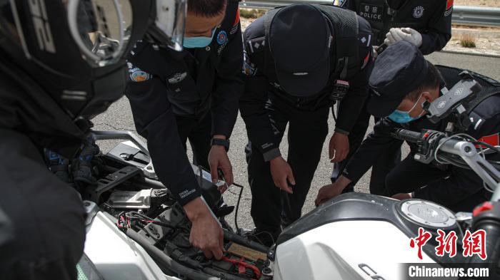 圖為馬攸橋邊境檢查站民警救援故障摩托車。馬攸橋邊境檢查站 攝