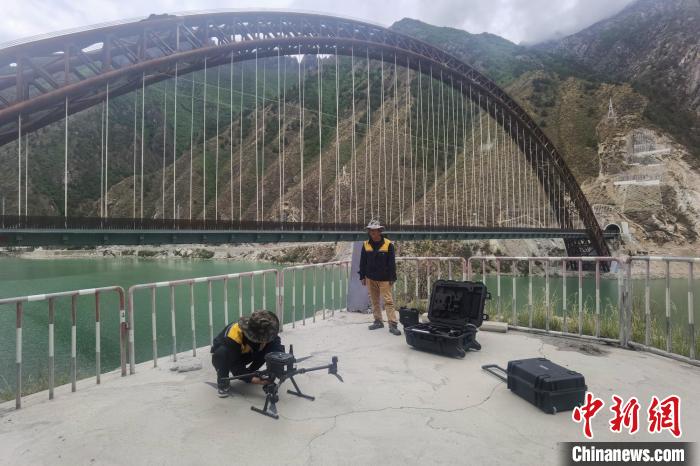 西藏拉林鐵路橋隧占比達到了75%,圖為工作人員在藏木雅魯藏布江雙線特大橋周邊巡檢?!±痛稳?攝