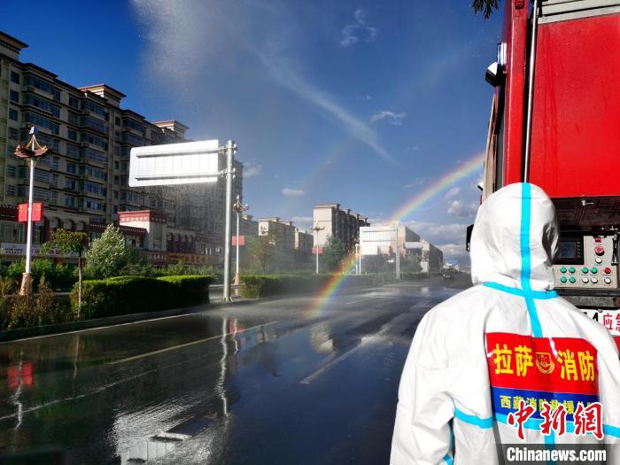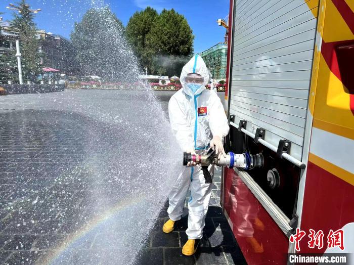 圖為拉薩消防指戰(zhàn)員在主城區(qū)進行消殺?!±_市消防救援支隊 攝
