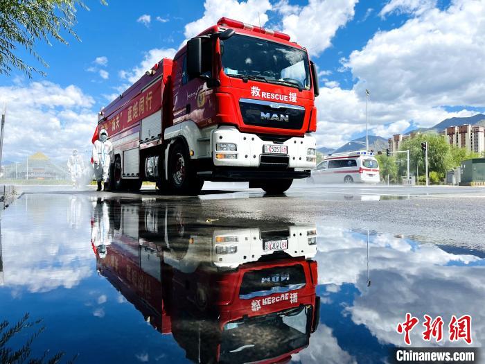 圖為拉薩消防指戰(zhàn)員為西藏加油?!±_市消防救援支隊 攝