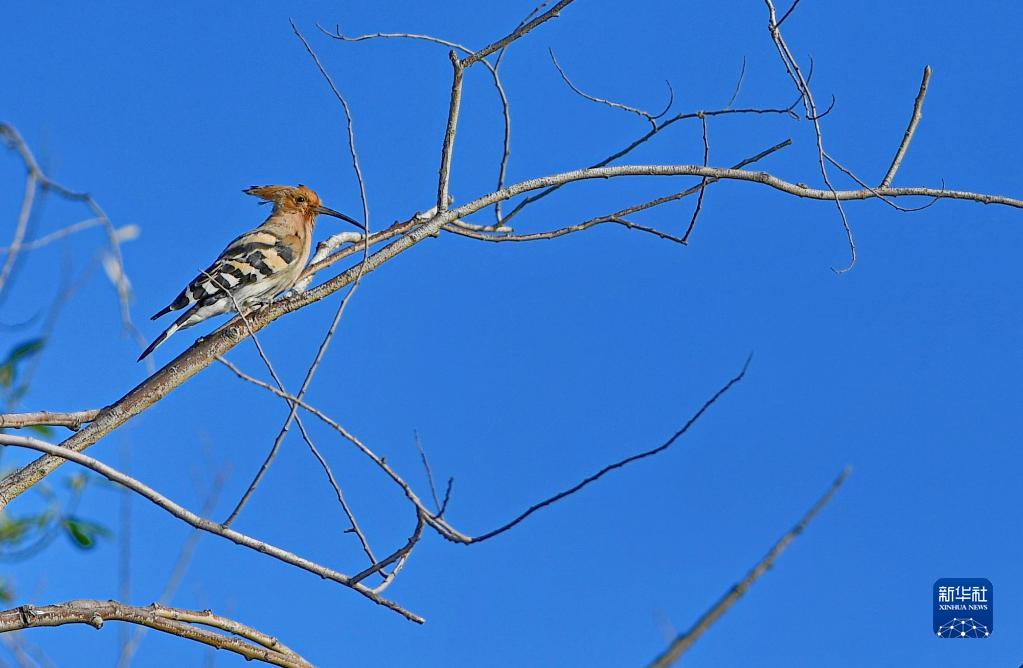 8月25日,幾只戴勝在樹上嬉戲。新華社記者 張汝鋒 攝