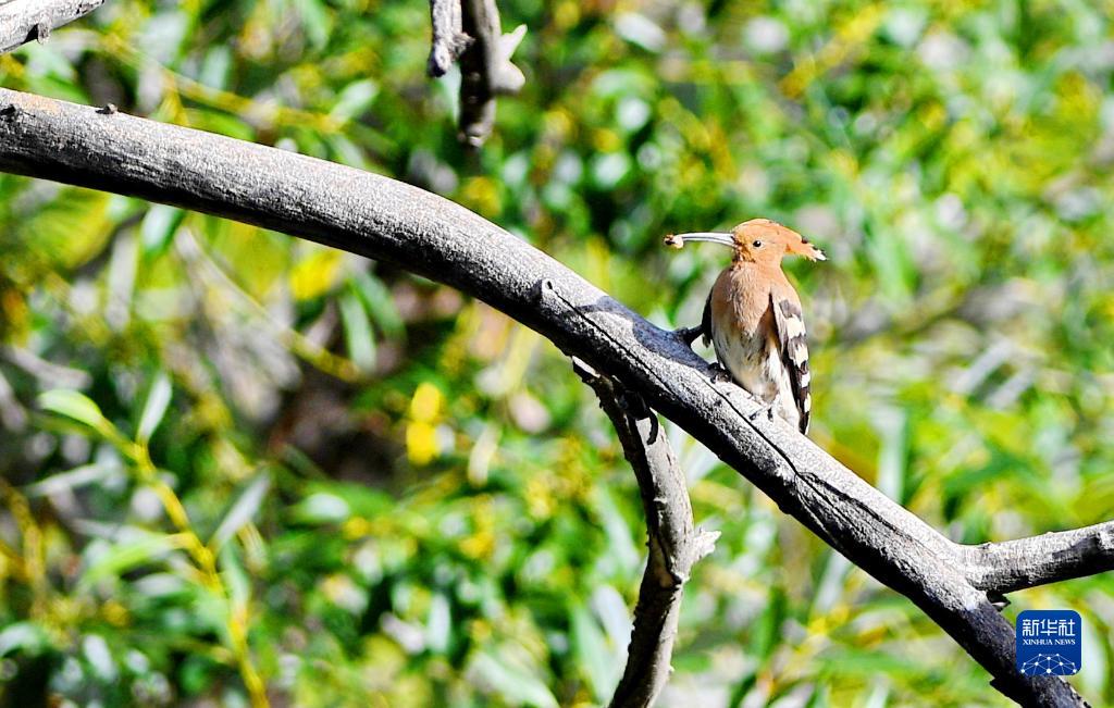 這是棲息在樹枝上的戴勝(8月25日攝)。新華社記者 張汝鋒 攝