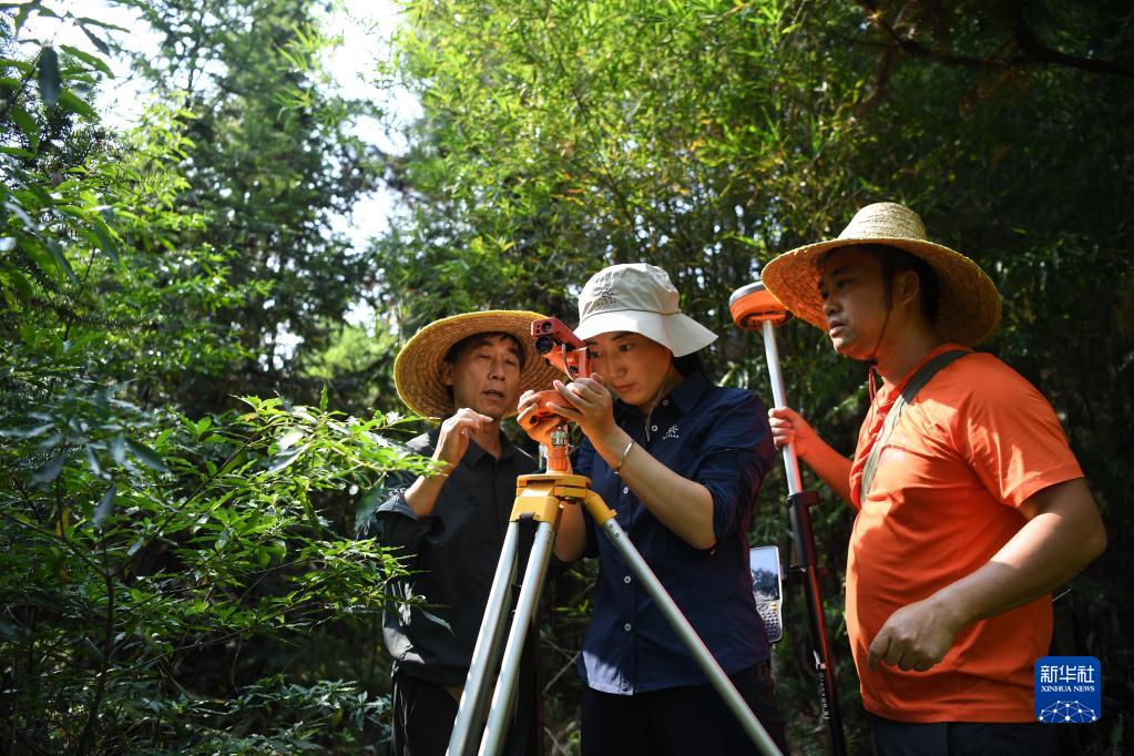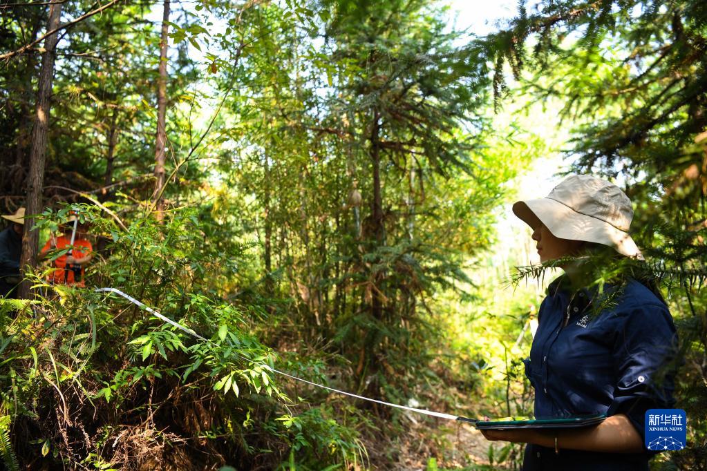 9月22日,白拉曲珍和同事在位于廣東韶關(guān)樂昌市張溪村的生態(tài)監(jiān)測(cè)樣地工作。新華社記者 鄧華 攝