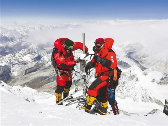配合開展國家第二次青藏高原綜合科學(xué)考察研究,助推西藏自治區(qū)加快建設(shè)生態(tài)文明高地。圖為2022年5月4日,珠峰科考登頂隊(duì)員在珠穆朗瑪峰海拔8830米處成功架設(shè)全球海拔最高的自動氣象站。