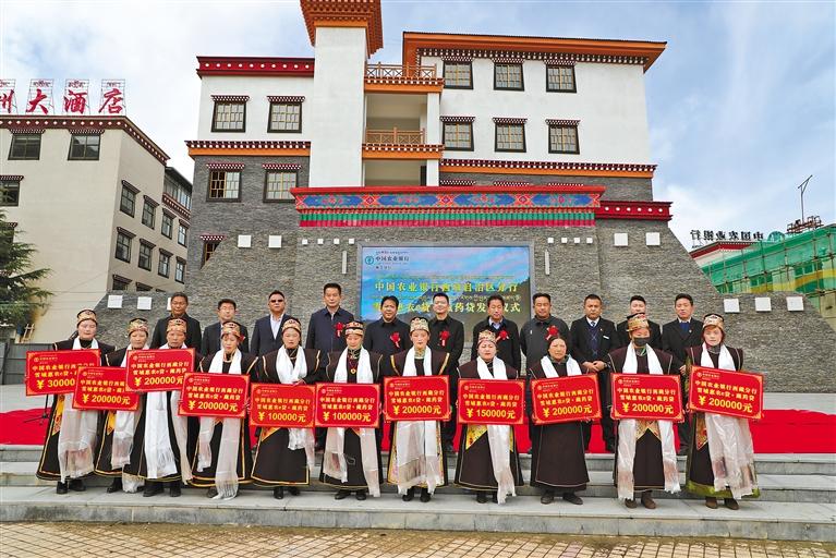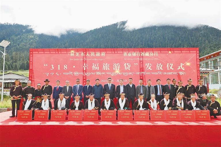 農(nóng)行林芝分行聯(lián)合林芝市旅游發(fā)展局創(chuàng)新推出“318·幸福旅游貸”,這是發(fā)放儀式現(xiàn)場(chǎng)。