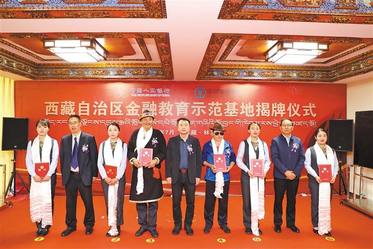 圖為林芝市首個(gè)自治區(qū)級(jí)金融教育示范基地在農(nóng)行林芝分行揭牌。