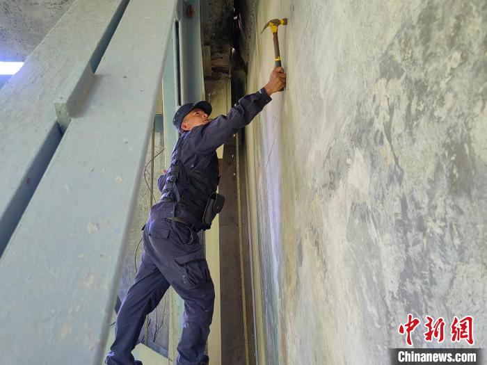 圖為墨脫邊境管理大隊民警正在檢查橋梁受損情況。 楊光飛 攝