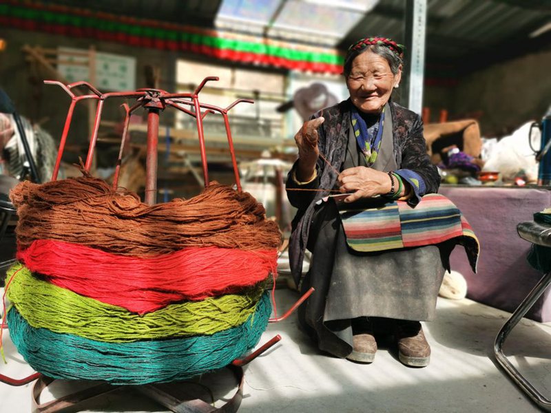 除了賣產品,次仁曲珍也心系十里八村的其他群眾。“我們的原材料(羊毛、羊絨),都是從周邊村子收購的。其實,以前很多老百姓家的羊毛要么自用,要么送人,幾乎很少出售?,F(xiàn)在他們可以送到我這里,市場價7元—10元/斤。”古老的紡織技藝與珍稀羊毛(絨)材質融合,是每一位阿佳用心編織的直抵人們內心深處的柔軟,更是她們的五彩夢想。