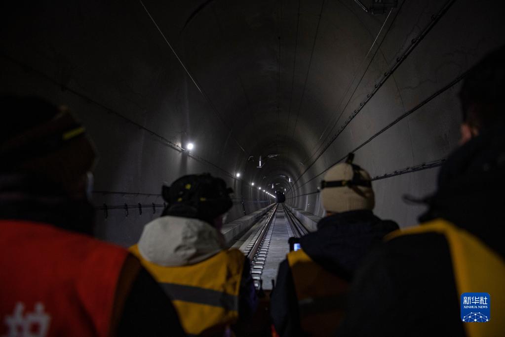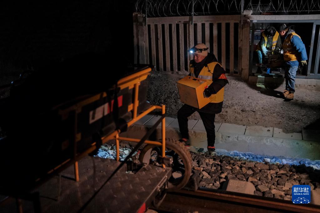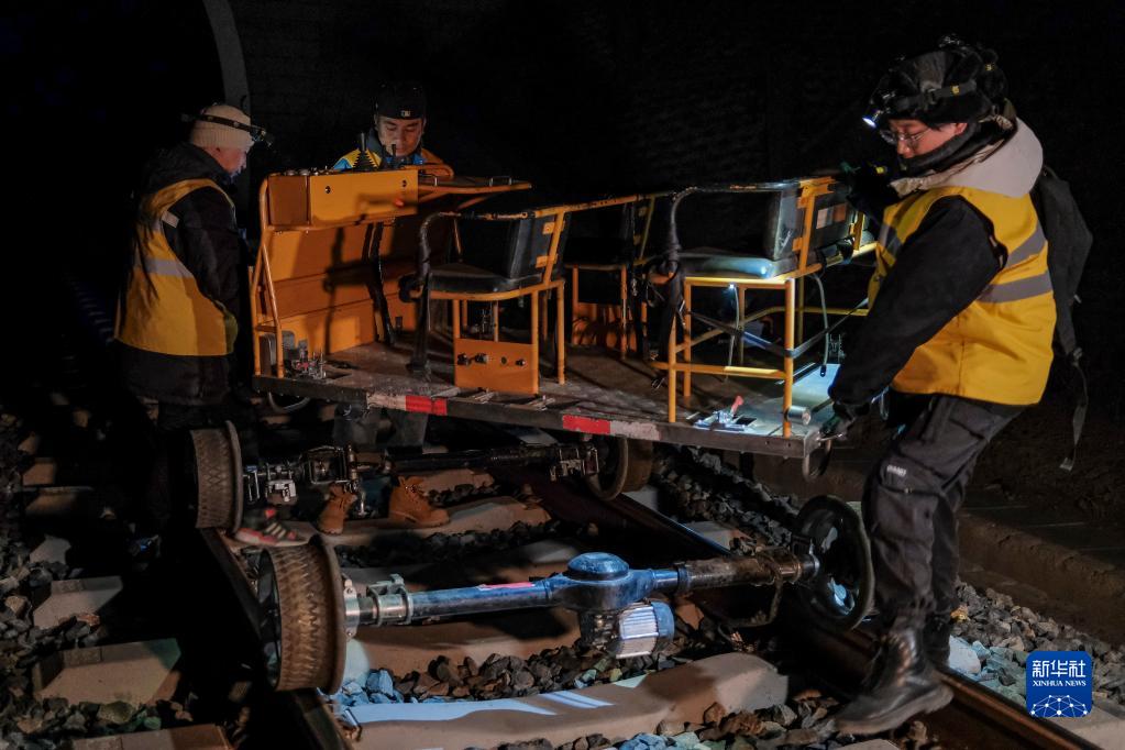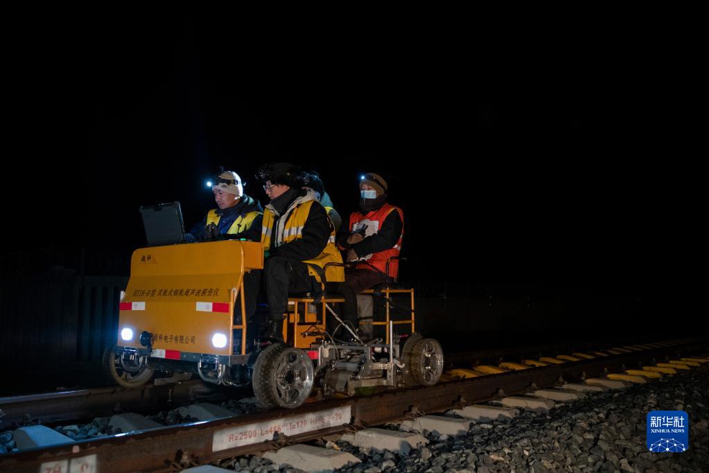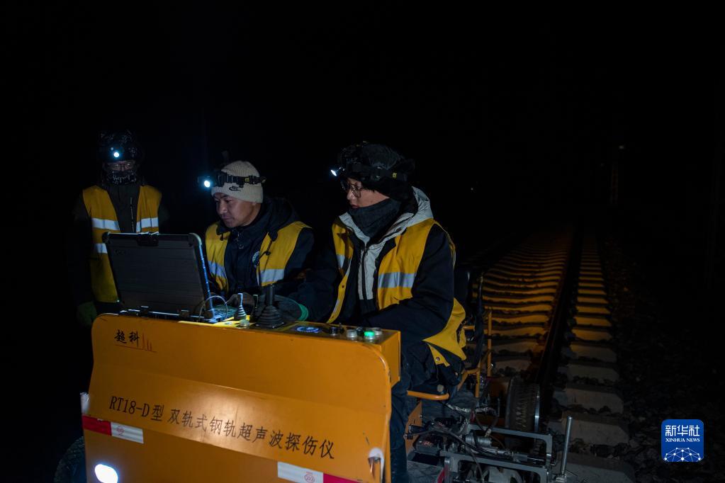 鋼軌探傷隊(duì)員在拉林鐵路進(jìn)行鋼軌探傷作業(yè)(1月12日攝)。新華社記者 孫非 攝
