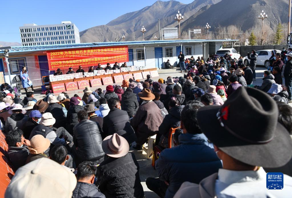 滴新村產(chǎn)業(yè)分紅儀式現(xiàn)場(chǎng)(2月2日攝)。新華社記者 晉美多吉 攝