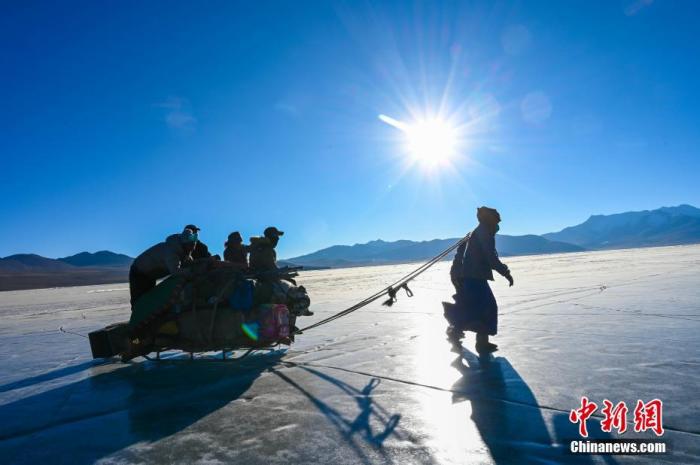 這個邊境小村3日迎來了一年一度的“趕羊”盛事。村民們將1400余只羊由岸邊通過厚實的冰面趕往湖心島牧場。普姆雍措被稱為“仙女之淚”,位于西藏山南市浪卡子縣,每到冬季極寒時,便是羊群轉(zhuǎn)牧場的好時機。