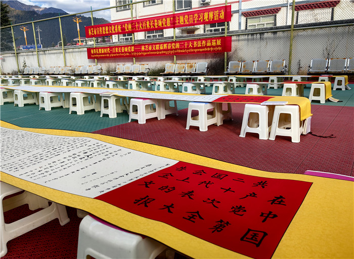 創(chuàng)新載體,全方位宣傳。林芝市統(tǒng)籌各類宣傳資源,線上線下同頻共振,全方位、多角度、寬領域、深層次宣傳黨的二十大精神和區(qū)黨委十屆三次全會、市委二屆三次全會精神,營造學習宣傳的濃厚氛圍。一是新聞宣傳強信心。林芝報、林芝廣播電視臺、西藏林芝網、微林芝等市屬主流媒體紛紛開設《學習貫徹黨的二十大》《新時代新征程新偉業(yè)》等多個專題專欄,持續(xù)推出學習貫徹黨的二十大精神相關報道。截至目前,共刊播《基層宣講員讓黨的二十大精神翩翩飛入百姓家》《軍民共話美好未來 繪就美麗鄉(xiāng)村新畫卷》等相關新聞2500余條。二是社會面宣傳筑同心。采取“屏、板、欄、幅”立體宣傳方式,在全市各級黨政機關和企事業(yè)單位大門LED電子顯示屏以及市、縣城區(qū)主要街道、跨街龍門、出租車頂燈、汽車站等公共場所的宣傳媒介上滾動播放自治區(qū)統(tǒng)一印發(fā)的宣傳標語1.2萬余條次,更新懸掛國旗3.5萬余面,制作發(fā)放宣傳海報1.5萬張、宣傳品2500余個,形成抬頭可見、隨處可學的濃厚社會氛圍。察隅縣上察隅鎮(zhèn)遲巴村村“兩委”和駐村工作隊用彩色粉筆繪制黨的二十大、“新黨章”等主題黑板報,用畫筆向村民傳遞黨的最新政策,深受群眾喜愛。三是網絡宣傳聚民心。充分發(fā)揮新媒體平臺宣傳形式豐富的特點,持續(xù)推送重磅報道和重點文章,策劃打造一批融媒體產品,在全網迅速興起學習宣傳貫徹會議精神熱潮。市委網信辦策劃制作短視頻《學習黨的二十大精神 談心得感悟》、“林芝融媒”抖音號推出《二十大時光》微視頻,將鏡頭對準二十大代表、基層黨員群眾,展現(xiàn)全市干部群眾積極向上的良好風貌?!鞍鸵巳诿健倍兑籼柾瞥觥包h的二十大精神快問快答”系列活動,線上線下聯(lián)動學習,推動黨的二十大精神入腦入心。“察隅融媒”抖音號策劃開展《鄉(xiāng)村振興正當時》黨的二十大主題抖音直播活動,通過網絡直觀展現(xiàn)新時代察隅新農村、新氣象、新希望。目前已開展7場直播活動,觀看人數達10萬人次。四是文藝宣傳暖人心。充分發(fā)揮市、縣(區(qū))、村三級文藝文化團體作用,組織開展“深入生活 扎根人民”“幸福不忘共產黨 陽光路上夢起航”等各類文藝文化活動,精心打造文藝精品力作,用文藝活動、文藝作品溫暖人心。截至目前,各級文藝演出隊開展文藝匯演293場次,參與人數4.2萬余人次;創(chuàng)作推出音樂作品《沐浴幸福》、攝影作品《我和國旗》、書法美術作品《建功新時代 奮進新征程》、文學作品《黨的光輝照萬家》等文藝作品300余個。波密縣完全小學在崗云杉林景區(qū)組織開展“學習黨的二十大,爭做好少年”采風寫生活動,學生們以文藝創(chuàng)作的形式學習黨的二十大精神,并將學習成果轉化到作品中。市民族藝術團以深入挖掘歷史文化、講好紅色故事為主題,籌拍了微電影《立定村屹立的紅旗》。市文聯(lián)書法美術家協(xié)會理事茹輝春同志,在黨的二十大召開后用行、楷兩種書法形式撰寫了黨的二十大報告全文書卷,書卷共有八卷,每卷長30米。市委宣傳部、市文廣局、市文聯(lián)組織市書法美術家協(xié)會開展“禮贊二十大·送福進萬家”林芝市2023年新春書法美術家“深入生活 扎根人民”送祝福和采風活動,共開展送春聯(lián)活動15場次,送出對聯(lián)、福字、掛軸、繪畫等作品8950幅(對),服務群眾6700余人次。
