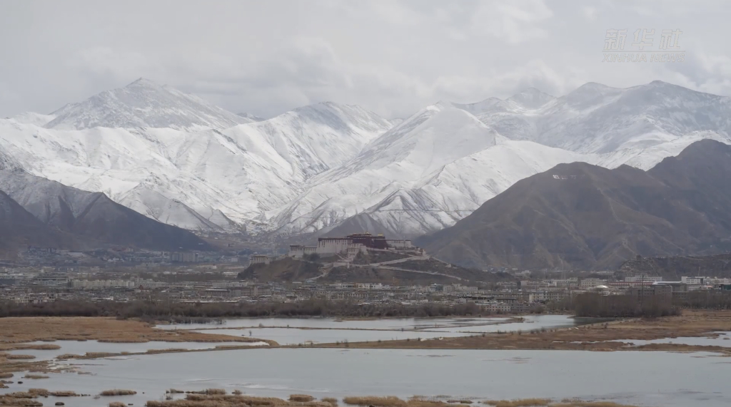 蒼穹昨夜飛瓊霄,散落高原作春雪。2月24日,剛剛進(jìn)入藏歷水兔新年的拉薩迎來降雪。城區(qū)南北的群山被白雪覆蓋,與這座高原都市交相輝映,分外迷人。