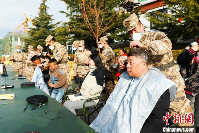 圖為官兵為民眾義務(wù)理發(fā)?!±_警備區(qū)某團(tuán)供圖