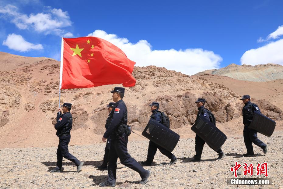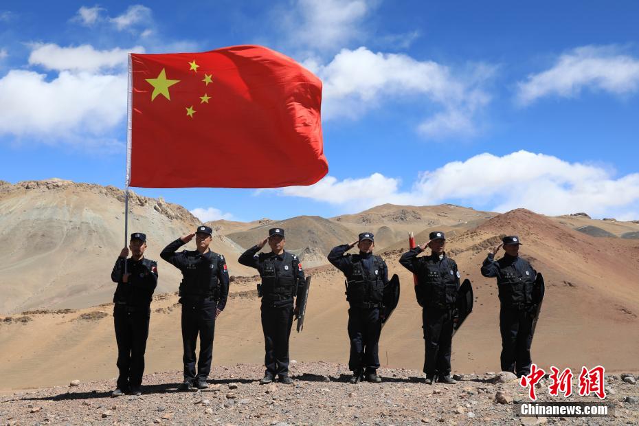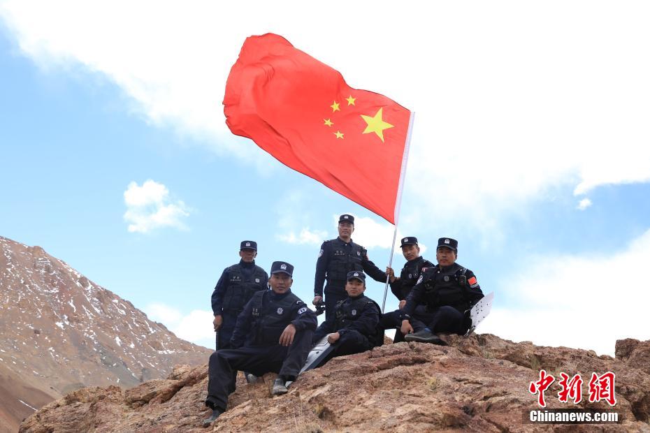 近日,西藏阿里邊境管理支隊(duì)扎西崗邊境派出所組織民警和護(hù)邊員通過乘車巡邏和徒步巡邏相結(jié)合的方式,前往海拔4800米的“守邊固邊第一村”——典角村古格川執(zhí)勤點(diǎn)巡邏,經(jīng)過一個(gè)小時(shí)的車巡和一個(gè)小時(shí)的徒步巡邏,民警到達(dá)了古格川執(zhí)勤點(diǎn)。通過巡邏,及時(shí)掌握了邊境一線情況,確保了邊境轄區(qū)安全穩(wěn)定。圖為民警與國旗合影。郭遠(yuǎn)敬 攝