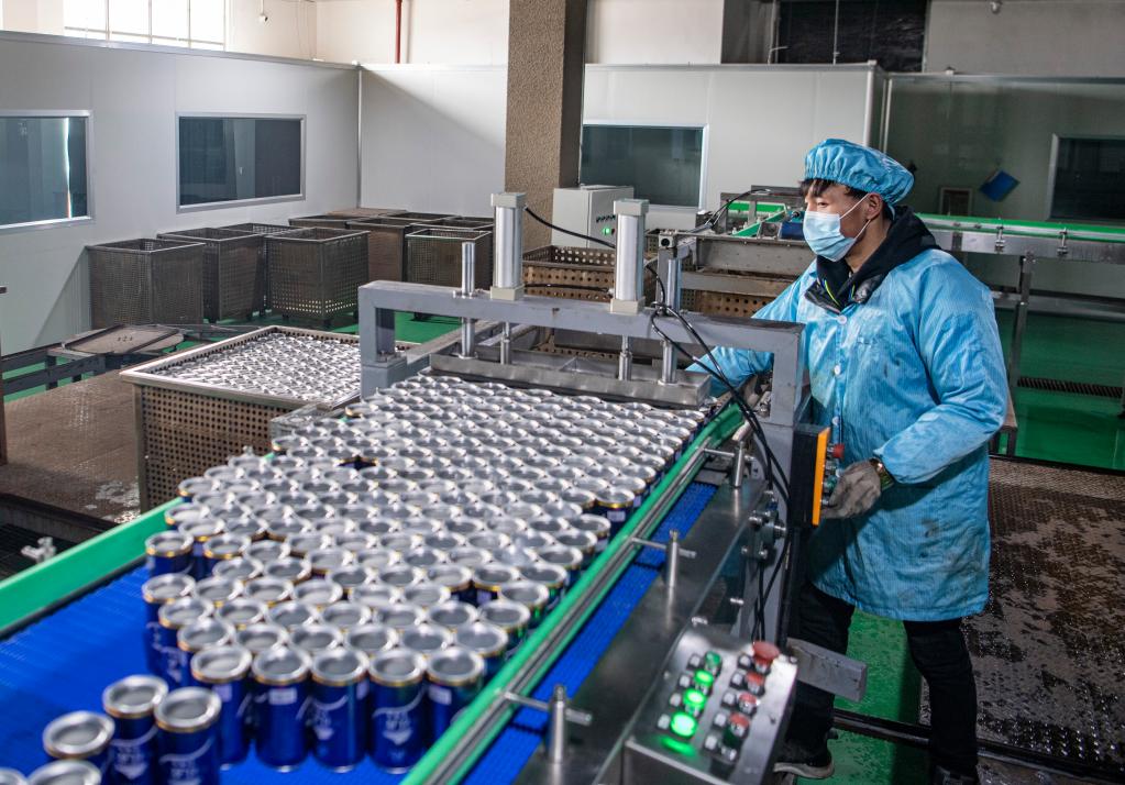 在西藏桑旦崗青稞酒業(yè)有限責(zé)任公司,工作人員正在操作青稞啤酒生產(chǎn)線(3月20日攝)。新華社記者 孫非 攝