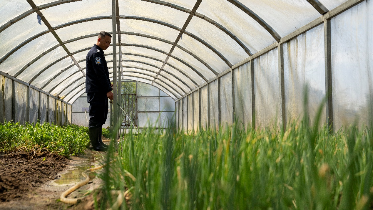 雖然巡邏路上艱險萬分,但民警早已把這里當成了自己的家,工作之余還搭建了溫室大棚,種植大白菜、豌豆尖、西紅柿等蔬菜。在漫長的邊境線上,派出所民警緊密團結在一起,繼續(xù)走在巡邏路上。