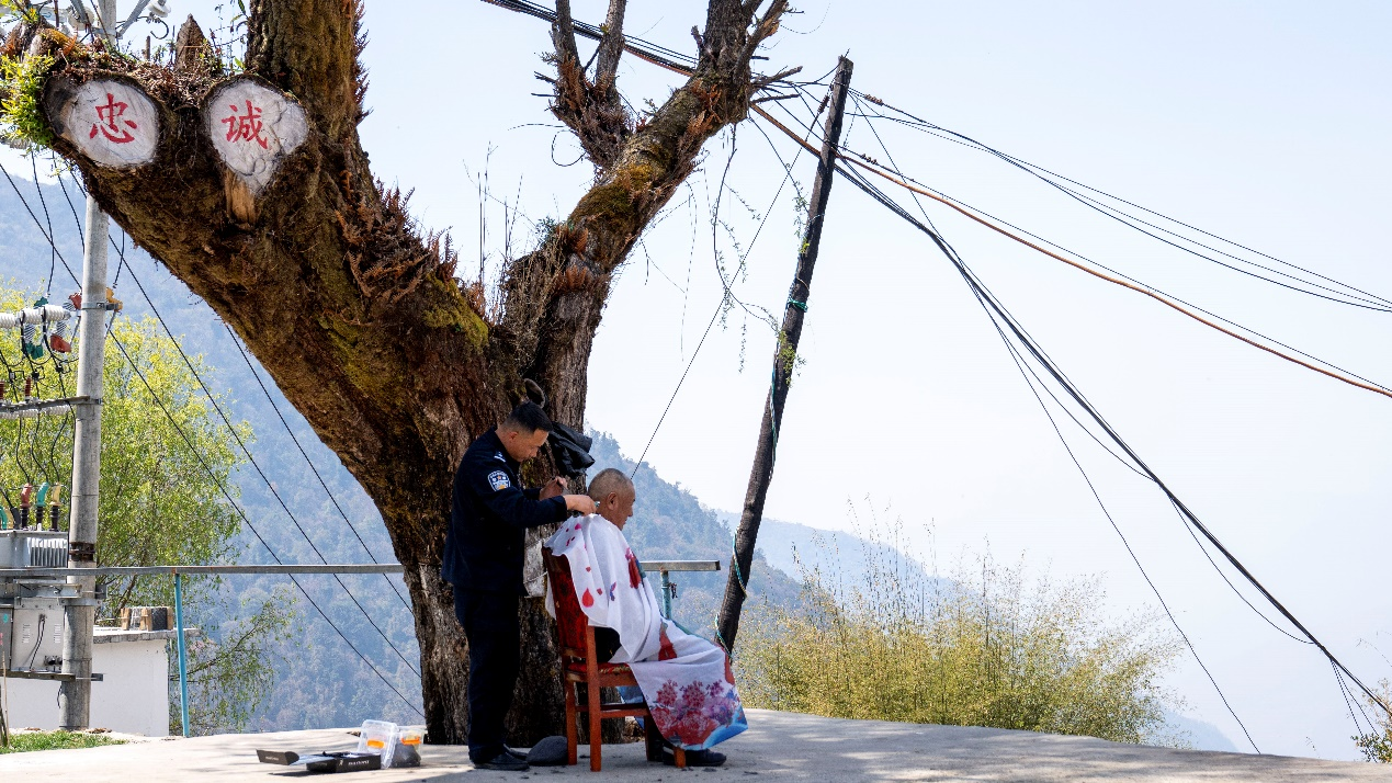 轄區(qū)村民和派出所民警關系很要好,民警日常走訪群眾時,經常會為群眾送去罐頭、蔬菜等生活物資。就在記者采訪當天,轄區(qū)村民次仁堅參來找民警幫忙理發(fā),“咱們警民是一家嘛,我對咱們民警的理發(fā)技術很放心!”次仁堅參笑著說。