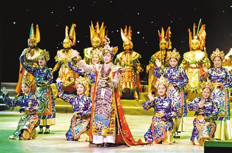 圖為歌舞劇《天邊格?;ā繁硌輬?chǎng)景。旦增蘭澤 攝