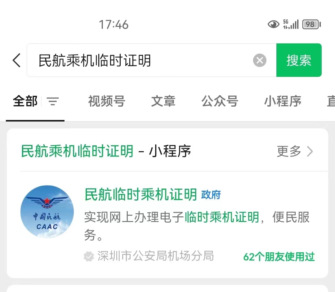 3、請您出示與購票時一致的有效證件辦理乘機(jī)手續(xù),以免因證件不符耽誤行程。如身份證過期或丟失,您可以在微信小程序和支付寶頁面搜索“民航臨時乘機(jī)證明”小程序進(jìn)行辦理。