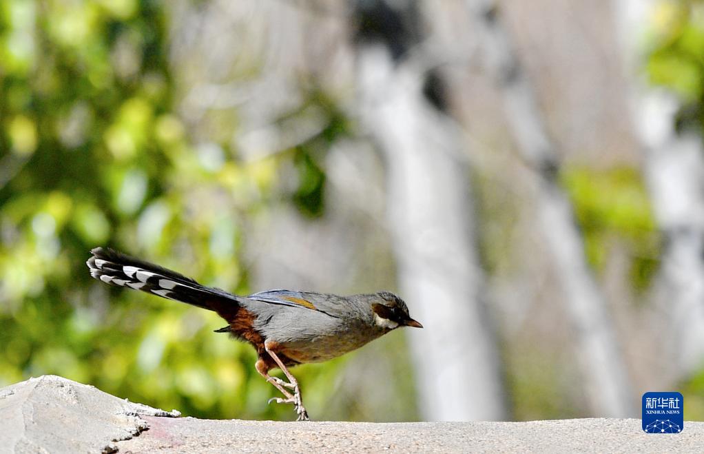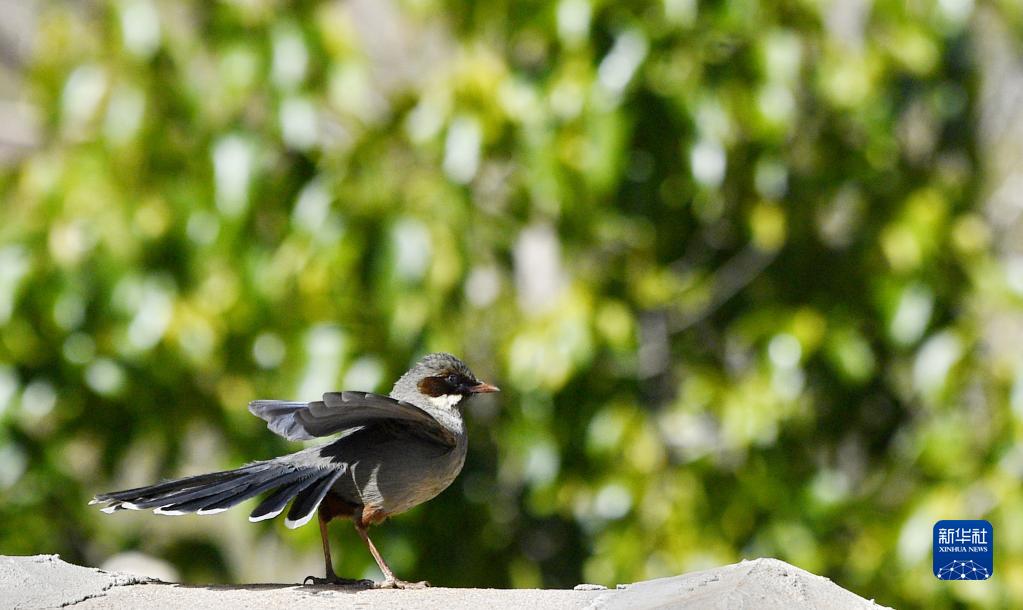 這是在拉薩市城關區(qū)蔡公堂街道次角林村拍攝的灰腹噪鹛(5月14日攝)。新華社記者 張汝鋒 攝
