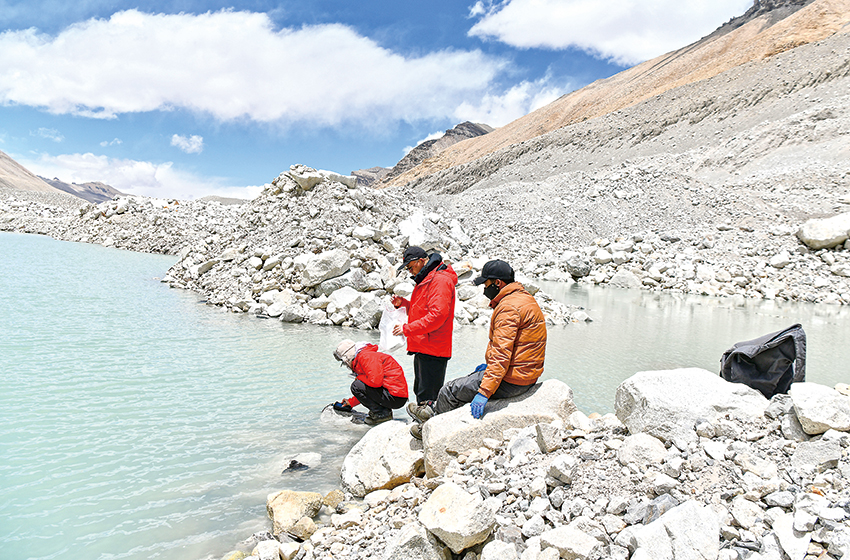 “我們沿著喜馬拉雅山脈做了很多工作,采集了2000多份樣品?!眲⒓褲M懷憧憬地說,“我們會(huì)從大本營(yíng)出發(fā)努力接近海拔7000米區(qū)域,完成15個(gè)雪冰樣品和15個(gè)沙石樣品采集。希望通過一塊塊拼圖,努力還原青藏高原形成演化的‘大圖紙’。”