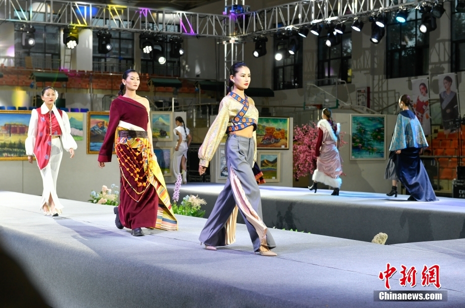 5月26日晚,西藏拉薩,西藏職業(yè)技術(shù)學(xué)院旅游與文化學(xué)院舉辦服裝與服飾設(shè)計(jì)專業(yè)2020級(jí)畢業(yè)生畢業(yè)作品展演活動(dòng)。本次展演活動(dòng)分為傳承、相遇、未來三部分,展現(xiàn)藏族傳統(tǒng)服裝與現(xiàn)代服裝設(shè)計(jì)的相遇與碰撞。中新社記者 貢嘎來松 攝