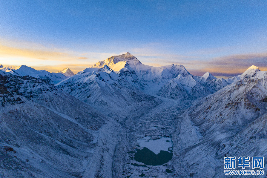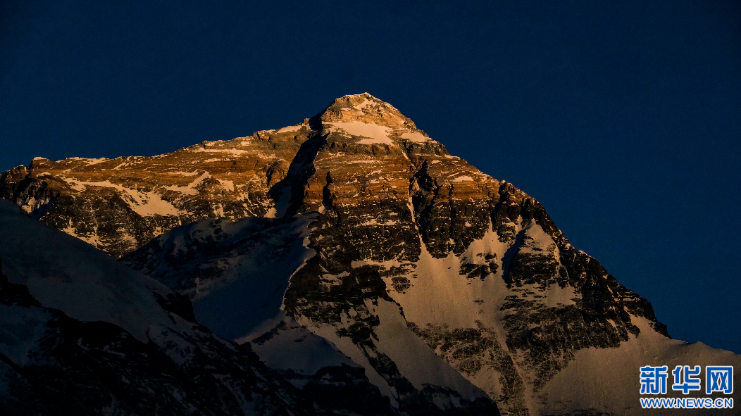 日落時(shí)分拍攝的珠穆朗瑪峰。新華網(wǎng) 旦增努布 攝