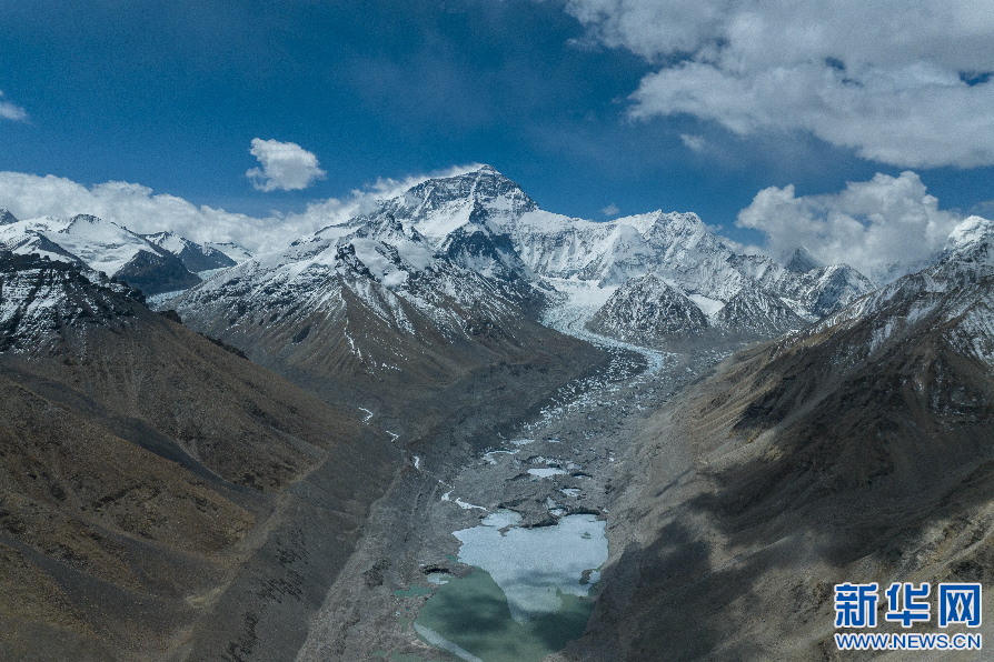 珠穆朗瑪峰與冰湖。新華網(wǎng) 旦增努布 攝