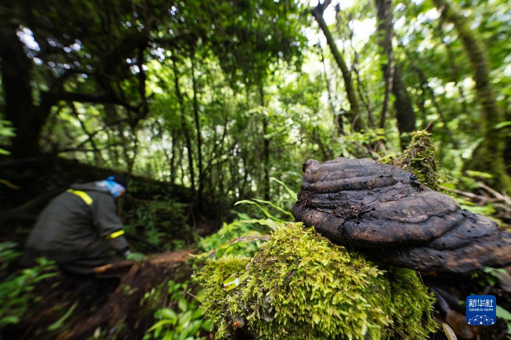 6月15日,在尋找亞洲第一高樹的路上發(fā)現(xiàn)的靈芝。新華社記者 費茂華 攝