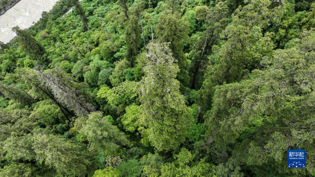 6月15日從空中俯瞰亞洲第一高樹(無人機照片)。新華社記者 晉美多吉 攝