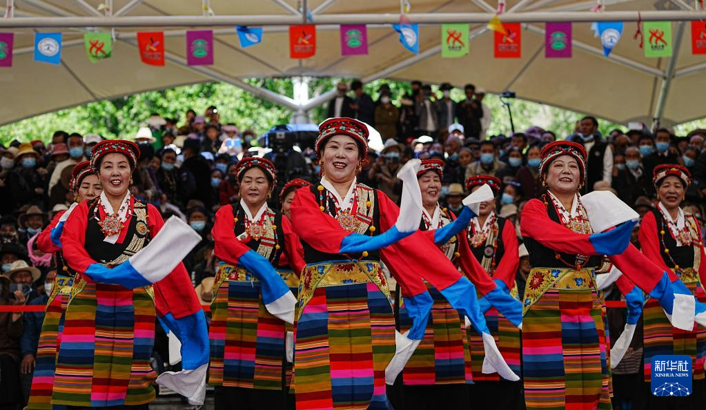 拉薩市首屆鍋莊舞大賽現(xiàn)場(chǎng)(6月22日攝)。新華社記者 晉美多吉 攝