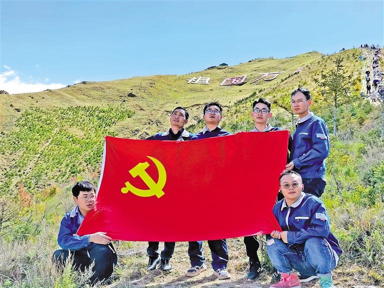 近日,中核華興區(qū)直單位援藏干部周轉房項目部黨支部開展主題登山活動。這是黨支部成員合影。 (圖片由該項目部提供)