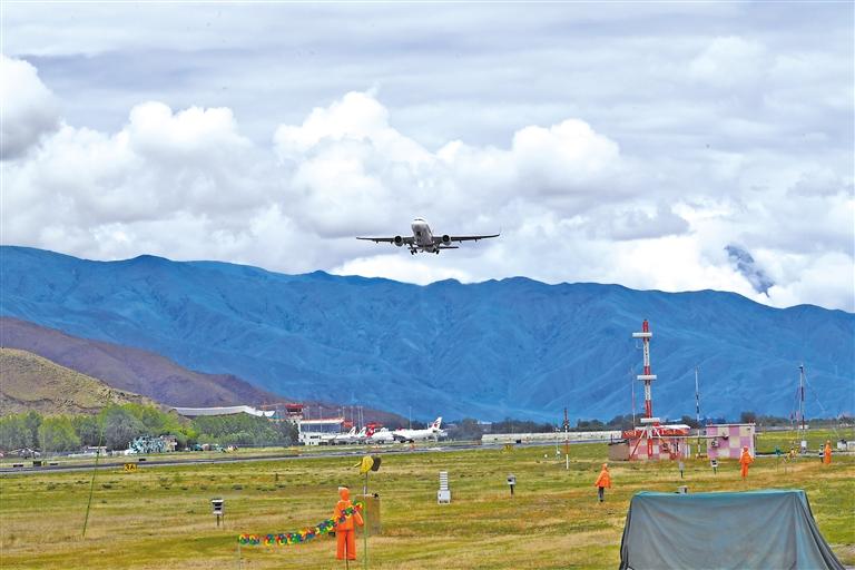 目前,全區(qū)已開辟航線157條,運營航空公司12家?!笆奈濉逼陂g,3個支線機場項目、拉薩貢嘎機場第二跑道工程項目、日喀則和平機場常規(guī)備降場升級改造項目陸續(xù)開工建設(shè)。其中,拉薩貢嘎機場第二跑道工程項目整體形象進度已完成約40%,預(yù)計2023年底建成投用。