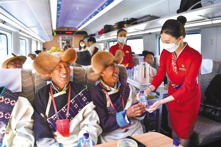“這兩年,我們與自治區(qū)政府部門及區(qū)教育廳建立聯(lián)動機制,動態(tài)掌握當(dāng)?shù)厝罕姵鲂行枨蠛蛯W(xué)生放假安排,爭取運力政策,有針對性地制定運輸方案,先后增開多趟林芝—日喀則、林芝—拉薩方向的學(xué)生專列、旅游專列、務(wù)工專列?!崩骤F路林芝站站長朱連祥介紹,靈活多樣的出行專列,不僅便利了各地群眾,對于促進藏東南地區(qū)間的經(jīng)濟發(fā)展、文化交流也具有重大意義,廣大民眾共享著鐵路事業(yè)發(fā)展的成果。