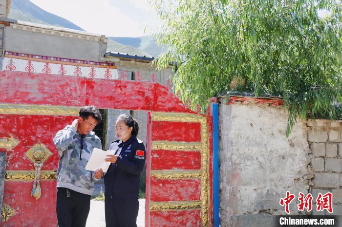 圖為索朗曲珍為鄰居解答戶籍辦理的相關(guān)政策。 應俊 攝
