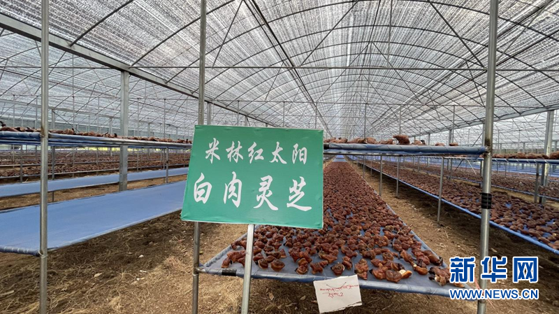 圖為紅太陽科技示范家庭農(nóng)場的種植棚內(nèi),仿林下野生環(huán)境種植的靈芝。新華網(wǎng) 陳穎 攝