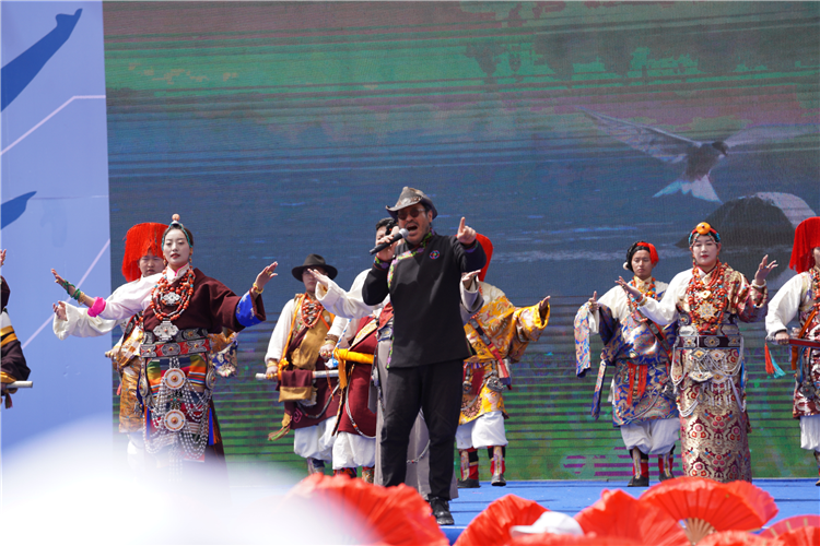 開幕式上,來自然烏鎮(zhèn)小學(xué)的200多名學(xué)生手持花傘,隨著音樂的節(jié)奏變換著各種復(fù)雜的隊型,精彩的表演令人賞心悅目;男女演員分別飾演十八軍戰(zhàn)士和小女孩,以時空對話的形式,演繹了八宿發(fā)展的歷史脈絡(luò)。開幕式還邀請了到著名藏族歌手亞東、扎西平措等前來助陣,歌聲穿透陽光,在然烏湖上空回蕩,為當(dāng)?shù)厝罕妿硪粓鲆暵犑⒀纭?nbsp;