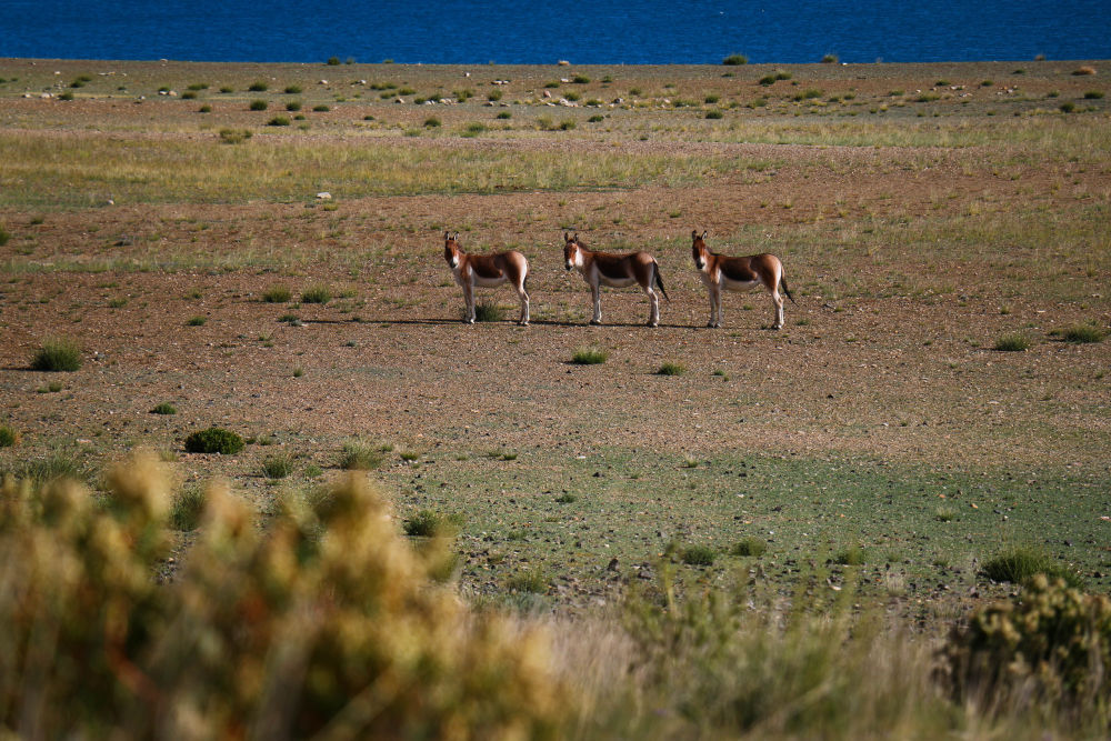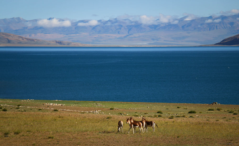藏野驢在拉昂錯旁停留(8月13日攝)。新華社記者聶毅、曹檳攝影報道