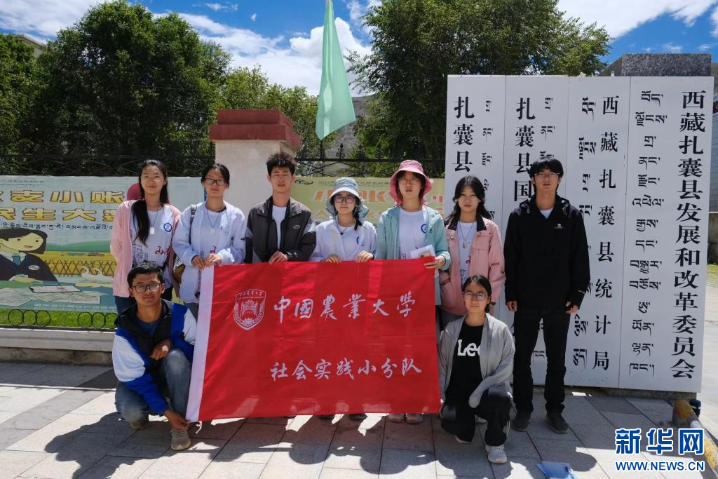 中國農(nóng)業(yè)大學峰云社人文科考隊隊員在西藏山南市扎囊縣合影留念。新華社發(fā)