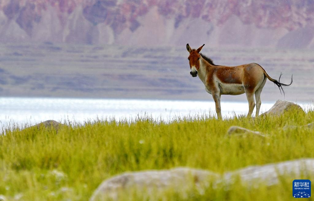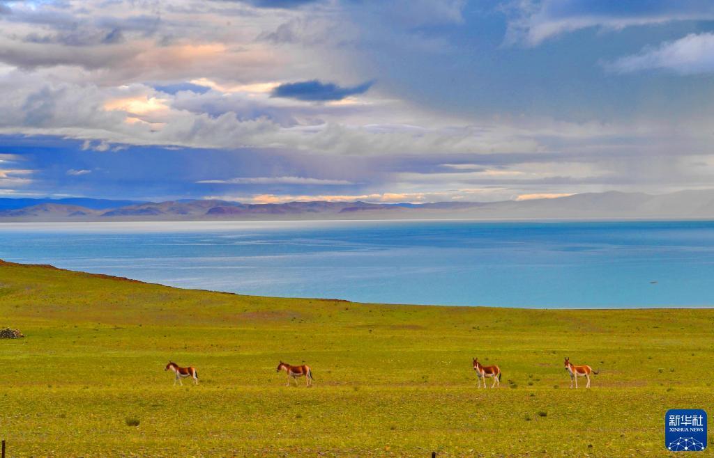 扎日南木錯湖畔的藏野驢(8月19日攝)。新華社記者 張汝鋒 攝